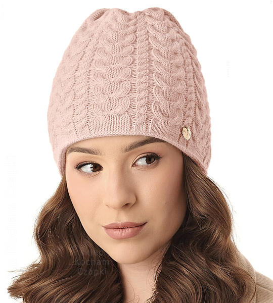 Ciepła i miękka czapka zimowa dla kobiet, wykonana z przyjemnej w dotyku dzianiny o ładnym, sweterkowym splocie. Czapka ma modny kształt – jej czubek delikatnie unosi się nad głową, dzięki czemu nie przylega i prezentuje się lekko oraz nowocześnie. Dwuwarstwowa konstrukcja zapewnia skuteczną ochronę przed zimnem i wiatrem. To wygodna i praktyczna propozycja na zimę – idealna na co dzień, do płaszcza lub kurtki.