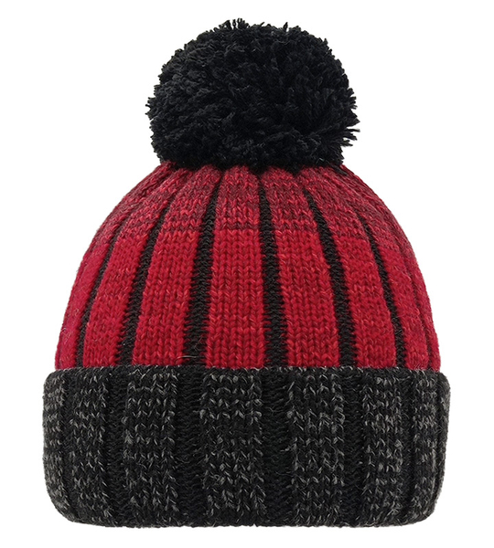 Męska czapka zimowa z pomponem – ciepła i wygodna na zimowe aktywności, czerono - czarna