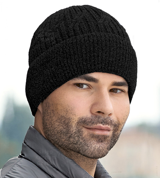 - Ciepła czapka zimowa dla mężczyzny. Czapka z podwiniętym brzegiem. Wewnątrz czapki podszewka z polaru.