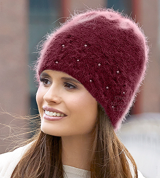 - Zimowa, elegancka czapka z serii premium dla Pań. Czapka z włóczki z angory (50%). Ozdobiona subtelnymi perełkami. Czapka z podwójnej warstwy dzianiny — jest ciepła i gruba.