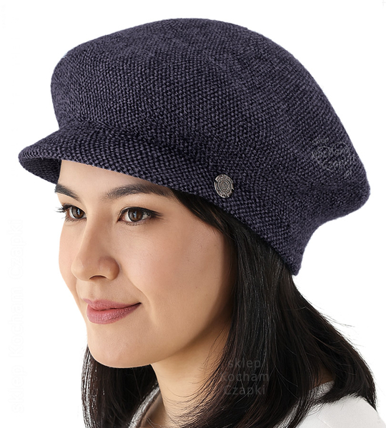 Damski kaszkiet na zimę, czapka z daszkiem Revna, granatowo-czarny melanż, 56-59 cm