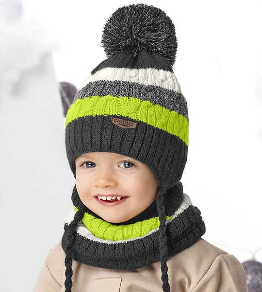 Komplet zimowy dla chłopca, czapka i komin, Ardal, grafit + limon, 50-54 cm