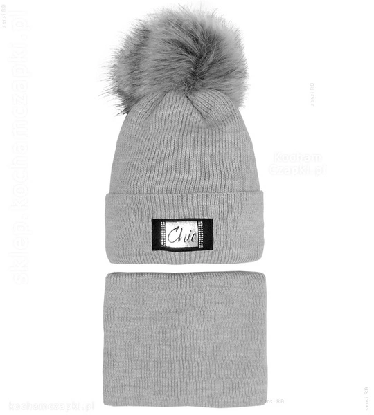 - Fantastyczny komplet zimowy: modna czapka zimiwa przyciąga uwagę swoim futerkowym pomponem oraz naszywką z błyskotkami. Czapka z modnym, szerokim mankietem, ma podszewkę z bawełny. Wysoki komin można marszczyć lub złożyć na szyi.