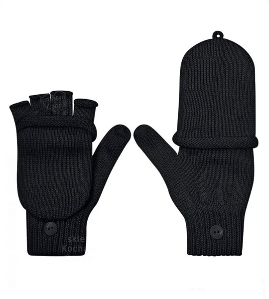 Rękawiczki damskie z wełny merino 100%, odkryte palce, 2317, czarne