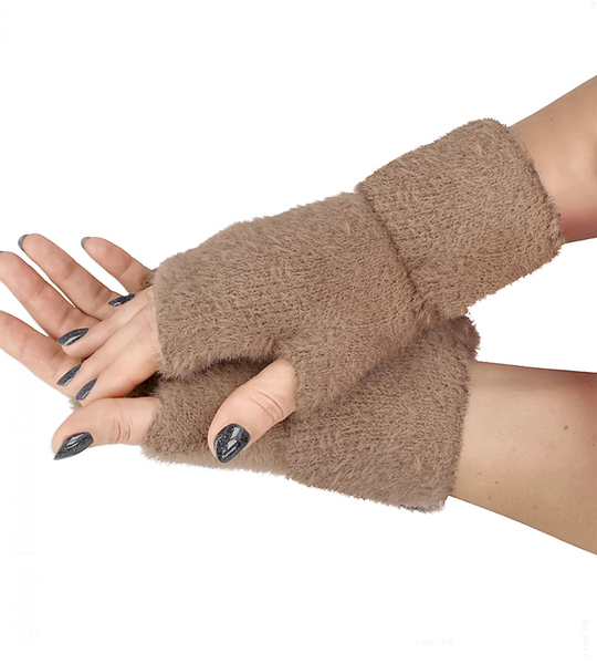 Rękawiczki - mitenki bez palców, damskie, Paraiso 54, kakaowe, M/L