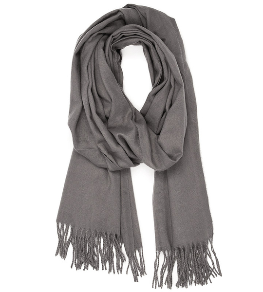 Opinie o Szalik damski ciemnoszary cienki z frędzlami – miękki, poliestrowy, na jesień i zimę