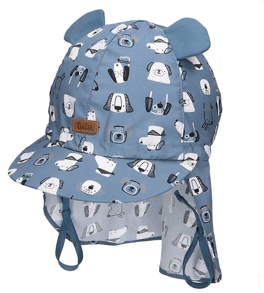 - Czapka wiązana, ma daszek i sterczące uszka.