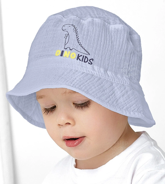 - Muślinowy kapelusz dla chłopca na lato. Lekki, przewiewny, idealny na upały. kapelusz z obrazkiem dinozaura.