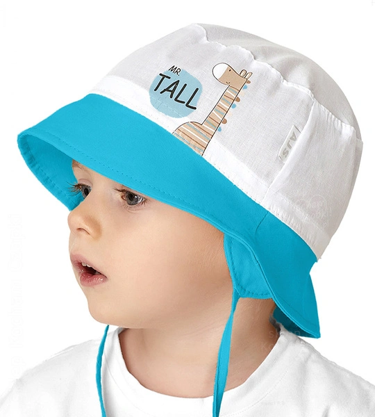 Kapelusz dla chłopca, wiązany, na lato, turkus + biały, Tinggi, 49-51 cm
