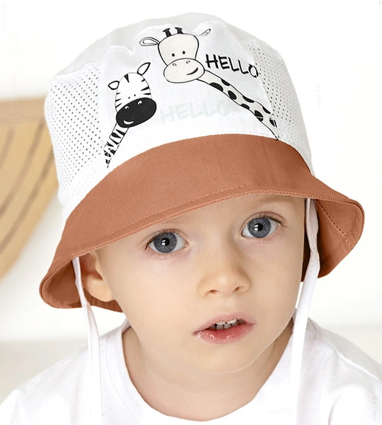 Kapelusz dla chłopca, z siateczką, Salve, biały + miedziany, 50-52 cm