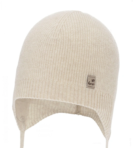 Czapka merino z kaszmirem, dla chłopca, wiosenna/jesienna, Notano, beżowa (07), 42-45 cm