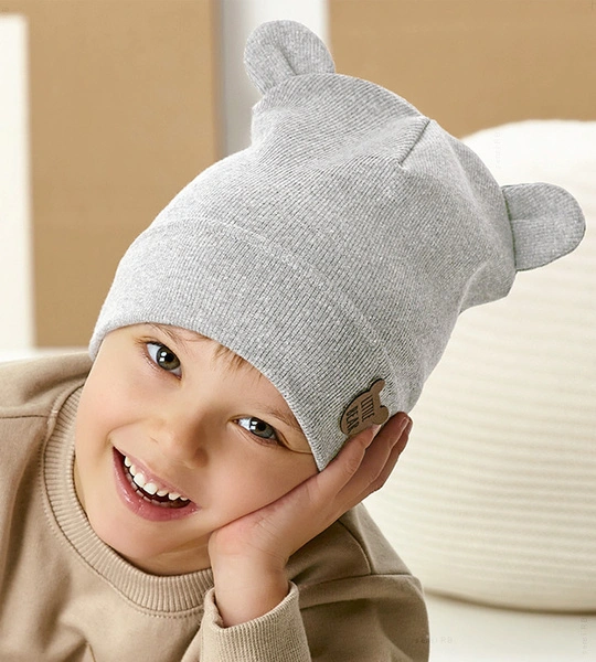 - Czapka bawełniana dla chłopca to stylowy dodatek utrzymany w prążkowanym wzorze, nadający mu klasyczny, ale jednocześnie nowoczesny wygląd. Posiada sterczące uszka, które dodają uroku i sprawiają, że wygląda jak zabawny miś. Na przodzie czapki umieszczona