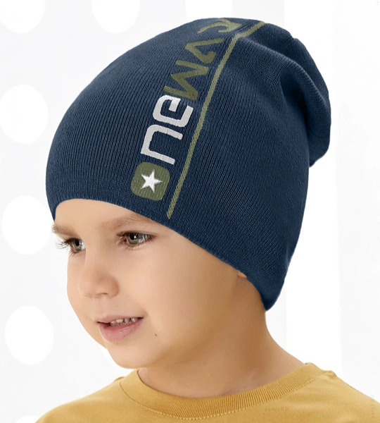 - Modna czapka dla chłopca uszyta z dzianiny. Z napisem NewAge