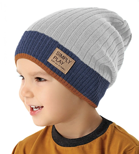 - Klasyczna super czapka chłopięca z naszywką i kontrastującym paseczkiem. Elastyczna, miękka i wygodna, dokonała na chłodne okresy przejściowe.