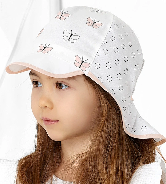 Czapka na lato dla dziewczynki, safari, Papilio, biały + pudrowy róż, 49-51 cm