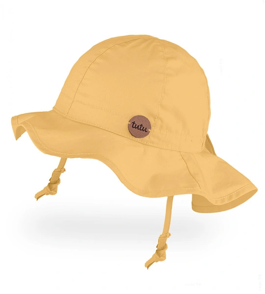 - Kapelusz z filtrem UV +30. Uszyte z przewiewnej, oddychającej bawełny z certyfikatem. Kapelusz posiada sznureczki do wiązania. Obwód kapelusza regulowany. Rondo z tyłu lekko wydłużone dla ochrony karku.