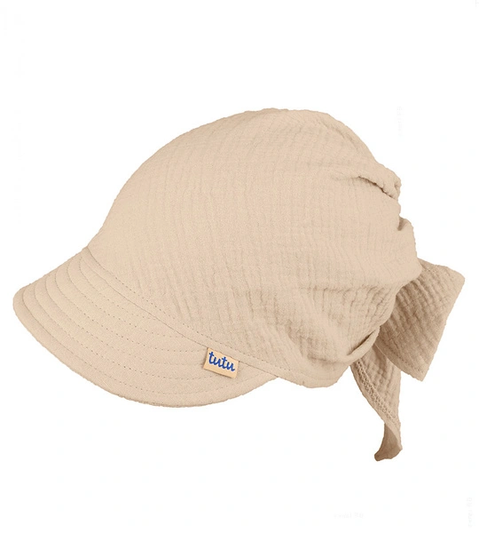 Muślinowa chustka z daszkiem, dla dziewczynki, beżowa, Noeni, 50-54 cm