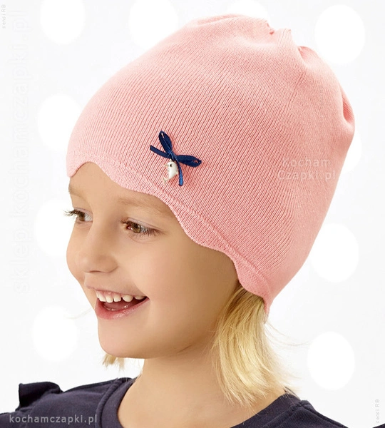 - Urocza dzianinowa czapka dla dziewczynki, doskonale sprawdzi się w chłodne dni. Rozciągliwa, dopasowuje się do głowy. Czapka klasyczna, gładka z ozdobną kokardką z delfinkiem.