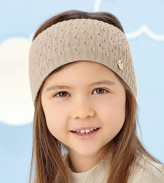 Opaska dla dziewczynki na głowę, dzianinowa, Debby, beżowa, 48-52 cm