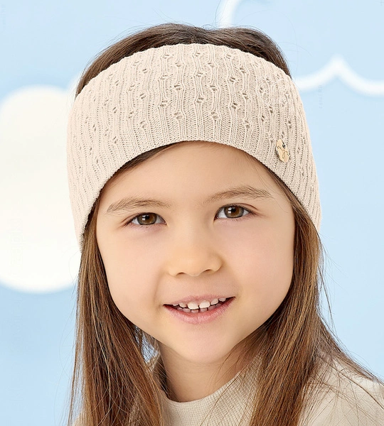 Opaska dla dziewczynki na głowę, dzianinowa, Debby, jasno beżowa, 48-52 cm