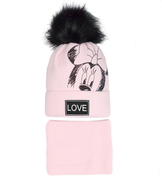 Beret zimowy i komin dla dziewczynki, Lopezja, jasny róż, 53-55 cm