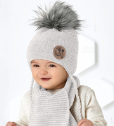 Czapka i komin dla chłopca, komplet na zimę, Nolicio, szary perłowy, 46-49 cm