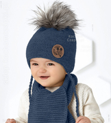 Komplet zimowy, czapka i komin dla chłopczyka, Giave, granatowy + beż (2), 46-50 cm
