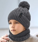 Czapka zimowa z pomponem i komin, dla chłopca, Maneso Junior, szary, 50-53 cm