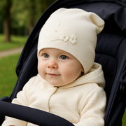 Czapka dla dziewczynki wiosenna/jesienna, dwustronna, BeBird, beżowa, 52-54 cm