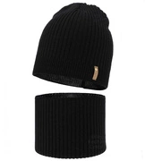 Komplet czapka zimowa i komin z wełny merino, dla dziewczynki, czarny, Lisvia, 50-52 cm