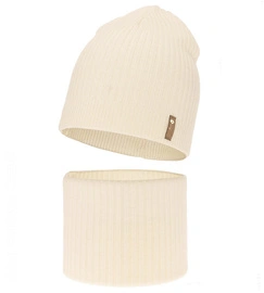 Beret zimowy i komin dla dziewczynki, Lopezja, kremowy, 48-51 cm
