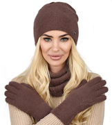 Czapka, komin i rękawiczki, damski komplet zimowy, Bernata, brązowy, 55-60 cm