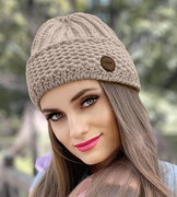 Czapka zimowa damska, włóczkowa, ciemny beżowy, Wilhelmina, 54-57 cm