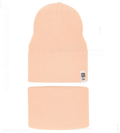 Komplet wiosenny/jesienny dla dziewczynki, czapka i komin, kremowy, Jakra, 50-54 cm