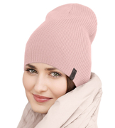 Czapka wiosenna-jesienna damska, z dzianiny w prążek, pudrowy róż, Engera, 54-57 cm