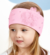 Opaska dla dziewczynki, turban, różowa (3), 3633, z kwiatem, obw. 45-47 cm