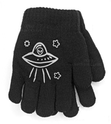 Rękawiczki dla chłopca, ocieplane, pięciopalczaste, Ufo, czarne, 3-5 lat