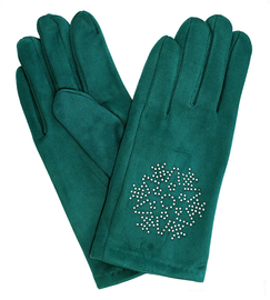 Rękawiczki dla dziewczynki, welurowe, eleganckie, zielone, 12-14 lat