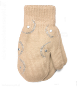 Rękawiczki zimowe, jednopalczaste, ze sznurkiem, kremowe, R49